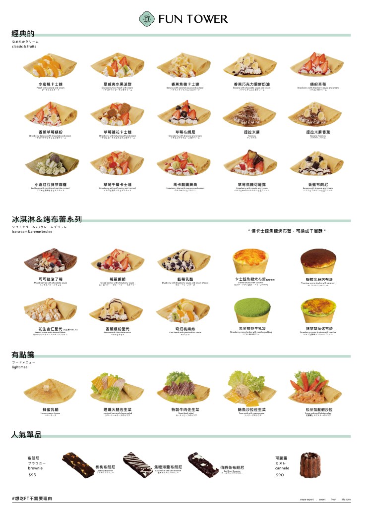 這讓我萌生了想把當初幸福的味道分享給身邊的人,於是一退伍正值24歲年輕充滿熱情的年紀,沒有多想就跟著夥伴跑到日本軟式可麗餅的專門店,從無到有的虛心學習,帶著札實的技術和最道地的口味回來,讓大家都能品嚐後露出滿足的笑容,而這也是支持我持續前進的最大動力。